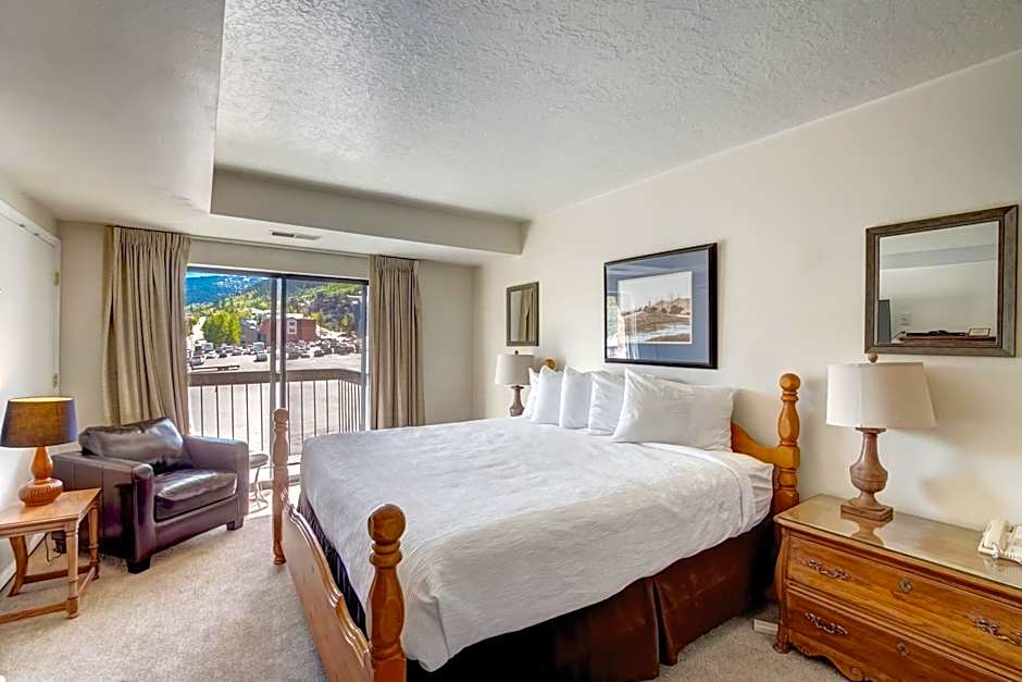 This suite features 2 bathrooms, a fireplace and kitchen.