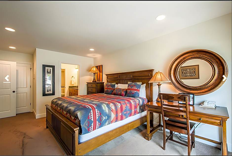 This suite features 2 bathrooms, a fireplace and kitchen.